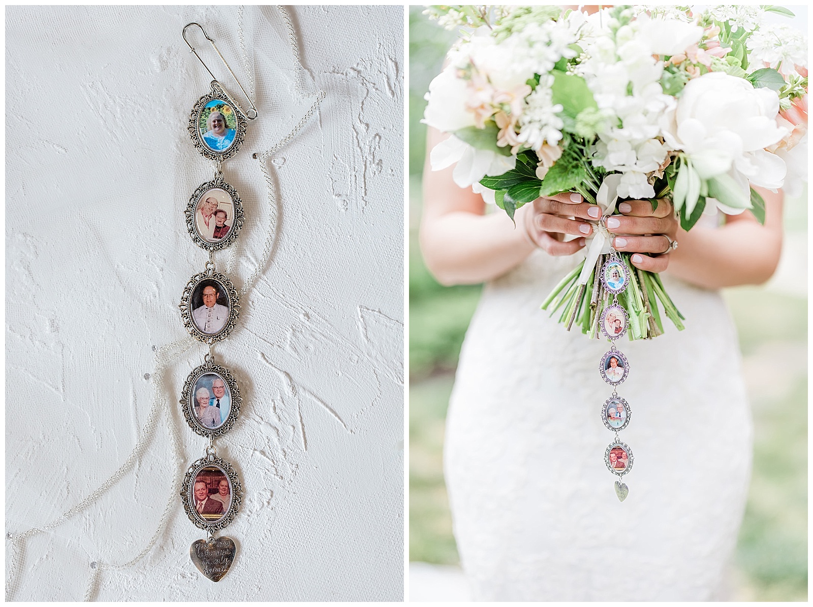 The couple exchanged letters as they were getting ready. Sarah gifted Erik a charm similar to her own memorial charms, pinned to his boutonniere in honor of his mother. In the front row of chairs, a seat was reserved in her memory.